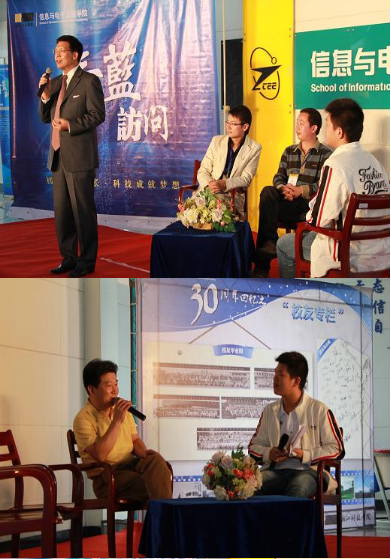 00年代的薛腾蛟、蔡明茂学长:薛学长是阿里牛牛公司的总经理,他是辞去高薪工作、卖了自己的房子进行的创业。他认为不要因为自己没有被清华北大录取而感到气馁,因为我们有更多的机会去雇佣清华北大的学子为我们打工。麻雀虽小,五脏齐全,要创业必须付出一切的代价,哪怕是卖了自己的房子,也是值得的。
