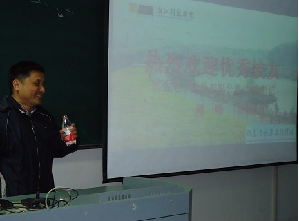 周峰首先谈了自己对母校变化的感慨,同时也简单的阐述了自己的就业经历和创业历程,并叮嘱在场的同学要好好的利用学校提供的良好平台发展自我。期间他也跟在场的同学进行了一对一的问题解答,并提醒现场的同学要经得起社会的考验,充分看到成功后面所付出的艰辛,好好的提升自我。
