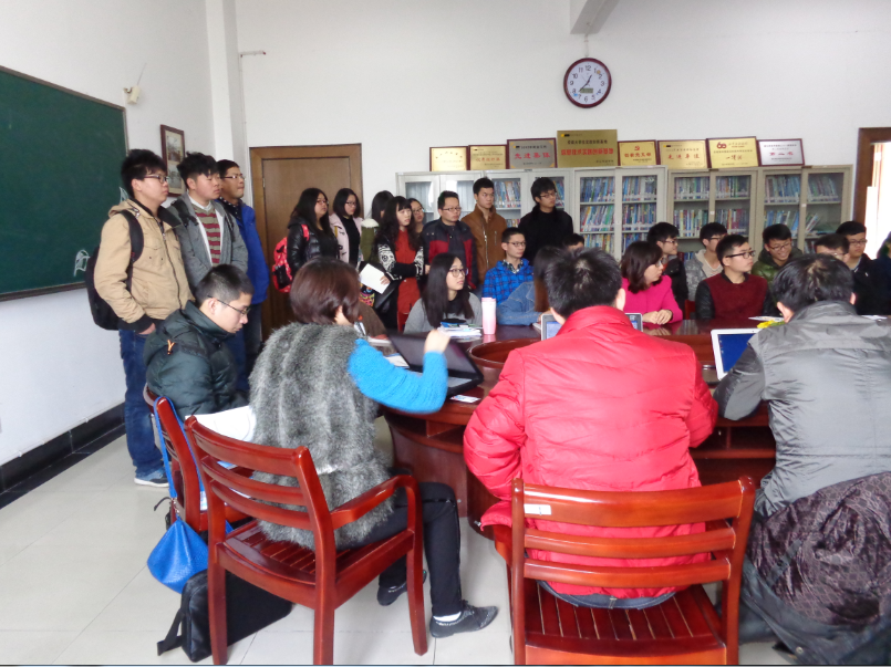 3月11日中午12点30分,C1-518会议室坐满了人,还有许多站着来本次见面会,其中不只有大三的学生,还有许多大二大一的同学,他们都是奔着该公司来的,都对微营势力移动互联网非常感兴趣。首先,姚学长为我们介绍了当前移动互联网发展的历史和方向以及什么是微聚合,微聚合是移动互联网时代中小实体企业商务电子解决之道。主要是基于互联网的一系列应用软件的开发,比如“易聊”,这是一款比“微信”应用更早的软件,可见该公司的技术实力。随后与我们分享了自己的折腾理念,展示了自己对事业不满足现状的野心。最后,龙骞科技人力资源总监为我们介绍了龙骞科技有限公司“诚信共享,以人为本”的公司理念,“精准求实,创造价值,创业创新,不断超越”的核心思想以及“完美舒适,广阔”的就职环境等,并邀漫画柜