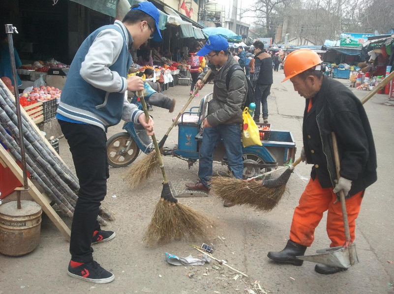 生活组全体成员赴留下市场进行卫生清洁工作,协助整治卫生状况。期间,秘书组的组员也过去帮忙,也有附近商户、居民自发地参与到清洁队伍,真正做到了我为人人的互助形式,为当代青年党员甚至其他群众作出了榜样。