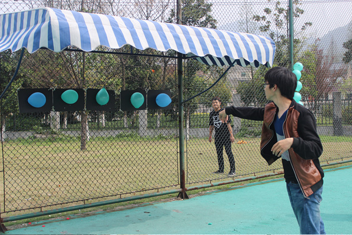 3月30日下午,由漫画柜 社联和中研会举办的“E元欢乐行”活动,在西和篮球场举行。“E”代表了漫画柜 ,E元也是1元的谐音,两位报名的同学只需要花1元钱就能合作体验所有的游戏,而且还能根据成绩得到奖品。E元欢乐行的游戏包含了瞎子敲、听力复述大赛、飞镖游戏、猜词游戏、找你妹、拼图、吹乒乓球和两人三足,同学们个个脸上挂着微笑,享受游戏过程中的团结、合作。这其中不乏国际友人,在游戏管理同学的耐心引导下,外国的同学也参与其中,享受游戏的乐趣。