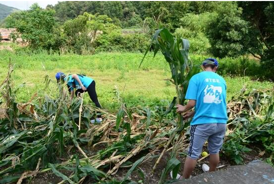 实践开始的前几天,舟山遭遇台风“灿鸿”冲击,街道两旁不少新栽的树木都被台风连根拔起,残枝断叶随处可见。实践队成员纷纷卷起衣袖来帮扶树苗,扶起田间倒伏的玉米秆,帮助环卫工人打扫清理一片狼藉的街道。在居民社区,队员们结合专业特长与自身优势,帮助乡民修理电脑。浓情七月,爱心信息。