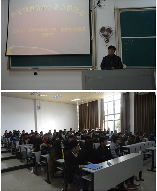 胡浙平老师以 “坚定理想信念,争做合格党员”为题开讲。首先他指出,党校是一道亮丽的风景线,强调了党校的独特性,告诉我们党校是进行理论教育和党性教育。他解释了每个人对入党看法也有不同,例如为了合群,或者为了以后工作时要求是党员。工作时很多人会更偏向于录取党员就是因为党员思想品德更好,以及更有奉献精神。随后,胡浙平老师以他个人的亲身经历告诉我们“个人委屈不要紧,要更党走”。胡浙平老师再次强调了入党心铁定,莫着急,入党动机要端正。共产主义是几代人,十几代人,几十代人才能实现的。虽然共产主义还有很长的路要走,但是并不像一些人说的很渺茫,中国实实在在地在向共产主义进发。理想信念是立党之魂。胡浙平老师之后又讲述了战争革命年代时的共产党员对党的理解,并提到了夏明翰的就义诗——“砍头不要紧,只要主义真。杀了夏明翰,还有后来人”。在社会主义的今天,胡浙平老师要求我们要有“六心”——把孝心留给父母,把诚心留给朋友,把热心留给社会,把忠心留给国家,把正心留给学习,把信心留给自己。同时,胡浙平老师给学员提了六条建议。1.要把坚定理想信念和模范践行社会主义核心价值观联系起来。2.坚持勤奋学习,学会学习。3.自觉文明修身,尊重他人。4.树立崇高责任。5.崇尚集体主义。6.追求身心健康。