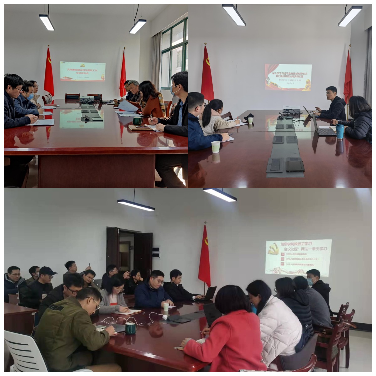 纪委在校纪委的指导下,认真做好“两法一条例”普法宣传工作方案,以学院纪委班子成员带头学,督促学院党组织开展理论学习中心组专题学习,结合教职工政治理论学习及党支部主题党日活动契机,纪委全体成员进联系支部、系部进行专题普法宣讲,组织全体教职工重点学习了省纪委省监委“两法一条例”专题讲座视频。在学院形成学习“两法一条例”普法学习新热潮,努力实现“两法一条例”学习宣传“全覆盖”工作。