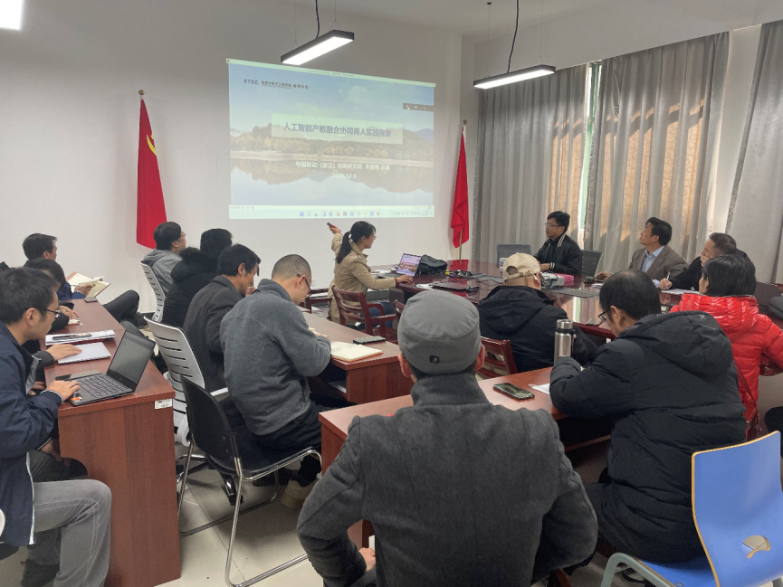邀请中国移动集团公司研究院资深研究员,兼中国移动(浙江)创新研究院研发总监刘童桐高级工程师,通过在线会议的形式与计算机、人工智能专业二十余位教师共同探讨人工智能产教融合协同育人实践探索方面的经验。